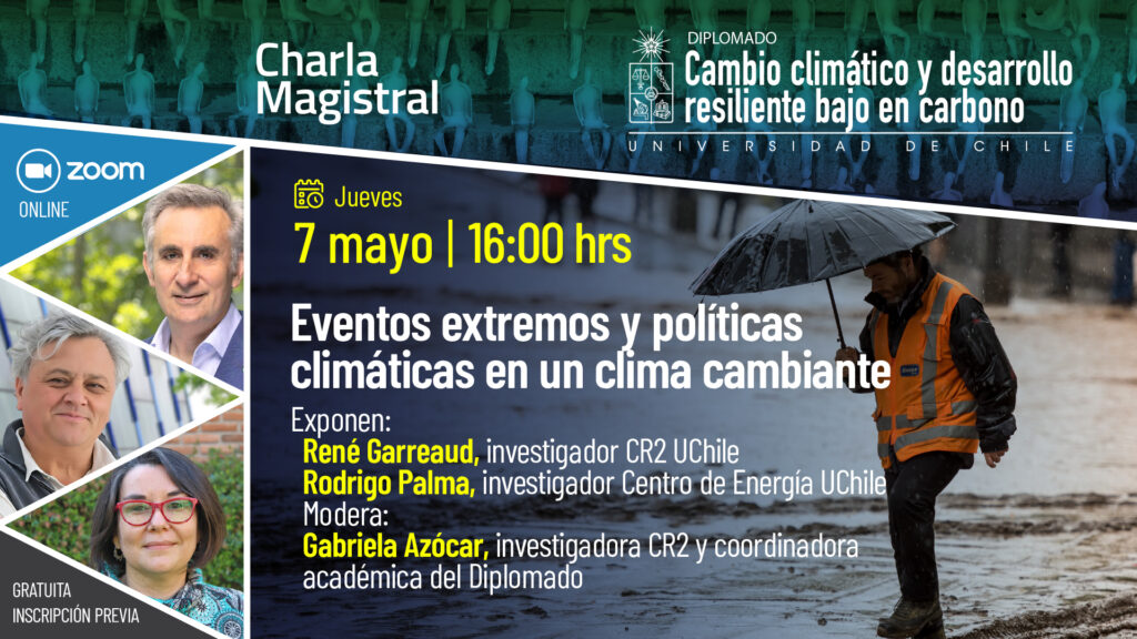 Les invitamos a ver la charla magistral: “Cambio climático: un problema complejo que requiere inter y transdisciplina” con la participación de Gabriela Azócar, doctora en Sociología, académica de la Universidad de Chile y coordinadora del Diploma; Bárbara Morales, doctora en Ciencias Sociales y jefa del área de diálogo e interdisciplina del CR2; y Laura Gallardo, doctora en Meteorología Química, académica de la Universidad de Chile y vicepresidenta del grupo II del Panel Intergubernamental de Cambio Climático (IPCC).